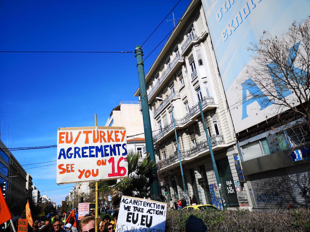 Wir sind immer noch in Athen, um Geflüchtete zu unterstützen. Wir haben beschlossen die Lebensmittelverteilung für obdachlose Geflüchtete in Athen auch langfristig zu unterstützen. Heute haben wir auch Lebensmittel für Geflüchtete die im Babylon Squat leben gekauft. Heute mittag gab es auch eine Demonstration für offene Grenzen in Athen. Viele Geflüchteten und Unterstützer*Innen sind zusammen auf die Straße gegangen und zum griechischen Parlament gezogen.