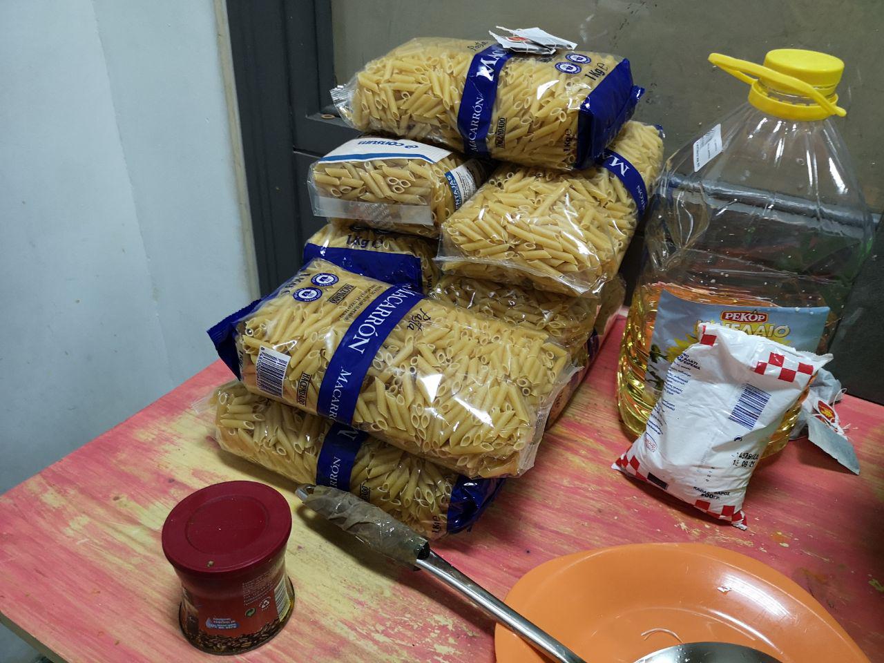 Wir sind wieder in Athen. Nachdem wir am frühen Nachmittag angekommen waren, kauften wir viele Nudeln, Reis, Kartoffeln, Gemüse, Obst, Öl und Salz für Geflüchtete, die im Azadi und Babylon Squat leben.