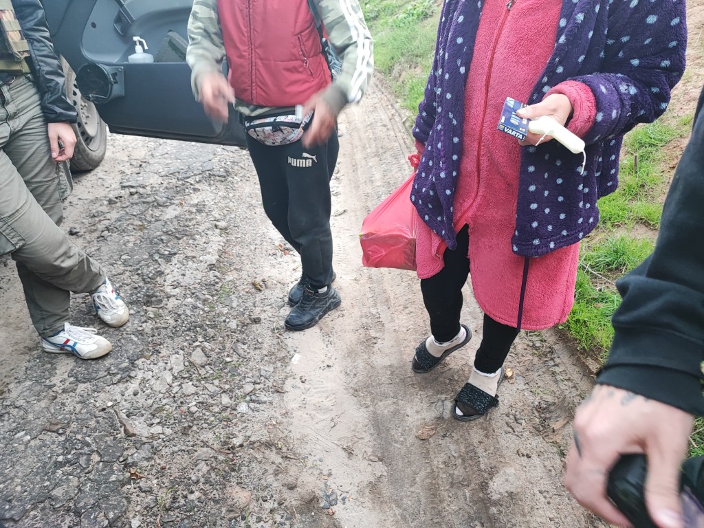 Die Helfer*innen setzen ihre Arbeit kurz darauf aber fort: „Etwa 1 Kilometer weiter setzten wir unsere Verteilaktion fort. Eine ältere Frau kam, weinend und erschöpft. Unsere Tac-Med nahm ihre Hand und sprach beruhigend mit ihr. Es gelang ihr, die alte Dame zu beruhigen. Im Hintergrund war das Donnern der Artillerie zu weiterhin zu hören,“ ergänzt Schuijlenburg.
